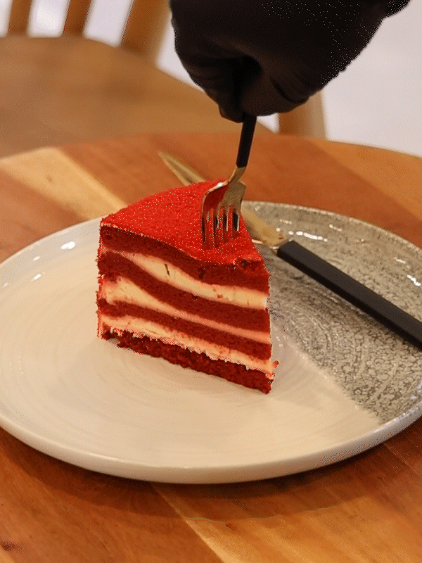 رِد فلفِت مخملي بلون ياقوتي مع حشوة جبن كريمي ناعم يوازن الحلاوة.